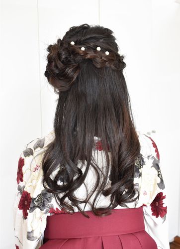 Blog 卒業式のお客様 2026.03.18Blogfaith 今日、卒業式に出席されたお客様です。白地にえんじ色の花模様が映えるお着物です。持参していただいた髪飾りとパールがハーフアップのアクセントになりました。ご卒業おめでとうございます。