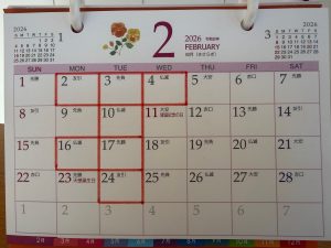 2日(月)、3日(火)、4日(水)・・・・臨時休業いたします